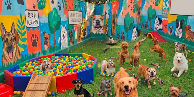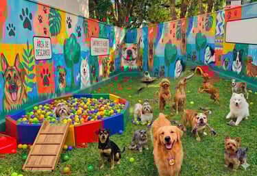 Muito mais que um pátio: gasto de energia inteligente e socialização monitorada para o seu pet voltar para casa relaxado e realizado.